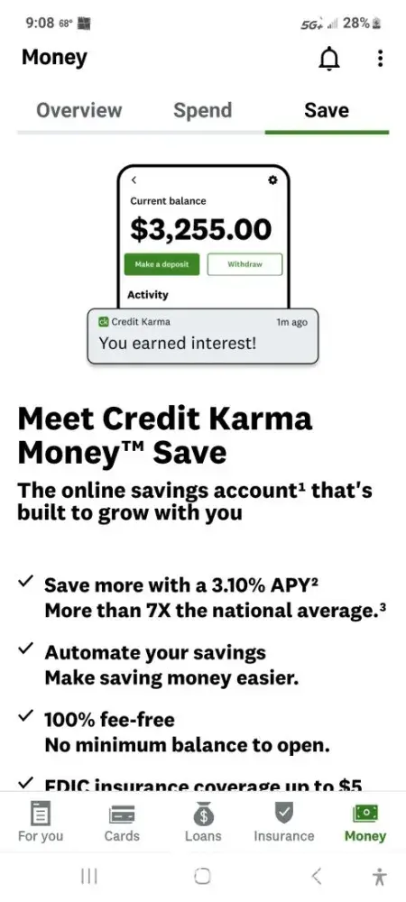 I had two money accounts open and utilizing with Credit Karma