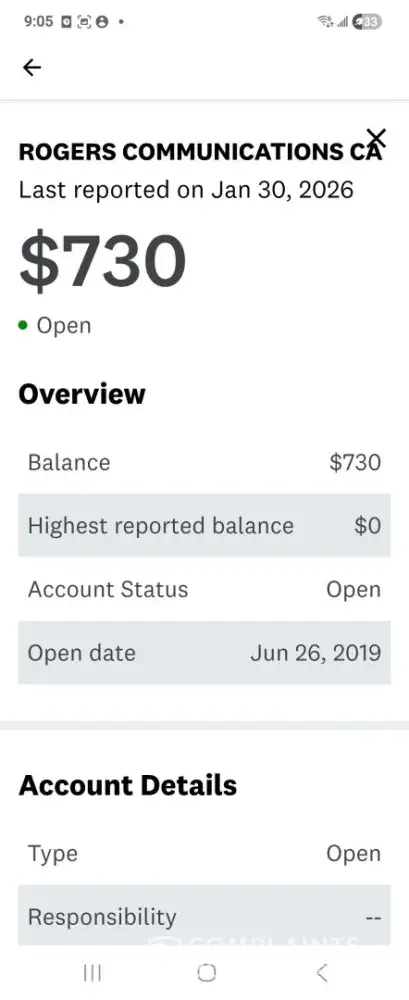 The credit report on my app is incorrect. For my Roger's payment, it says $750 when it's only $150 and it lowered my score also capital one is incorrect.