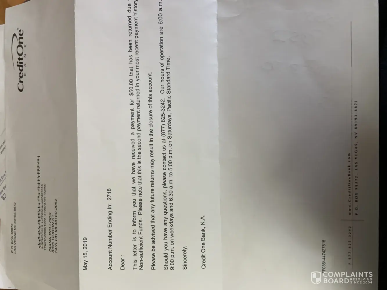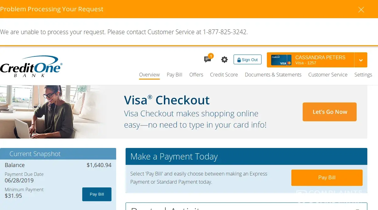 Credit One closed my account in May with a balance and stop sending me statements. I never received an official notice about my account being closed until I attempted to pay online.