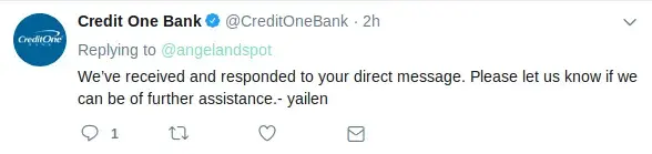 I have been receiving financial assistance from Credit One's credit protection since June 2018.