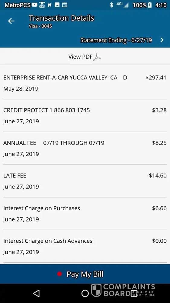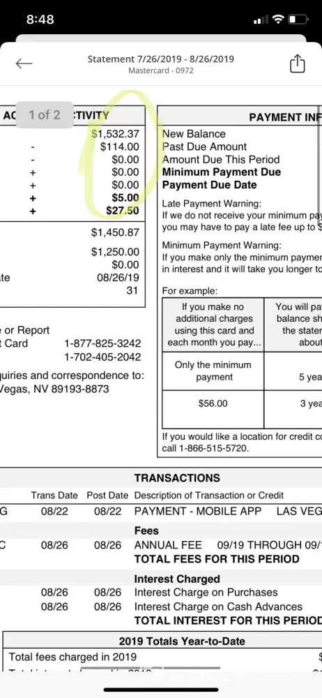 So #1 On Mays bill statement a transfer balance took place. This is the reason for the skipped payment from Credit Protection in June 2018 as well as the $74 late fees. I'd like the $74 dollar fees deducted in the same situation as May 2019.