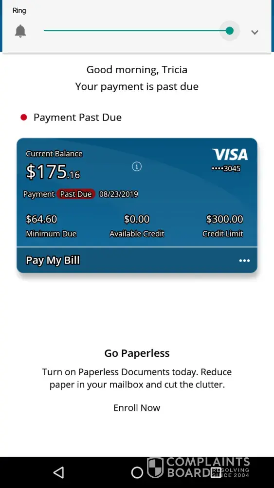 #3 After a payment of $181 from Enterprise Rental Car Credit One insist that this will not be recorded as a payment leaving me with a credit card that is STILL restricted. My available credit is 0 with a $300 credit limit. My balance is 175.16 with a minimum payment of 64.60. This is not appropriate!
