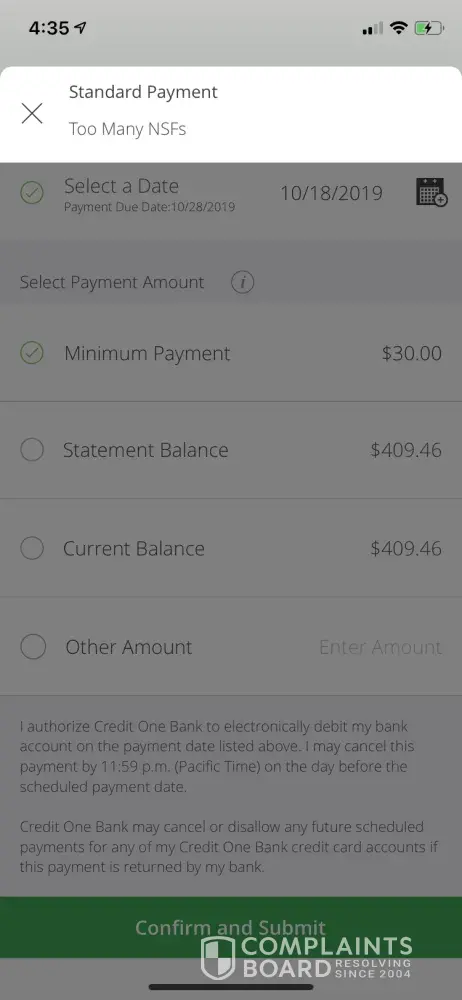 credit one bank payments and charges