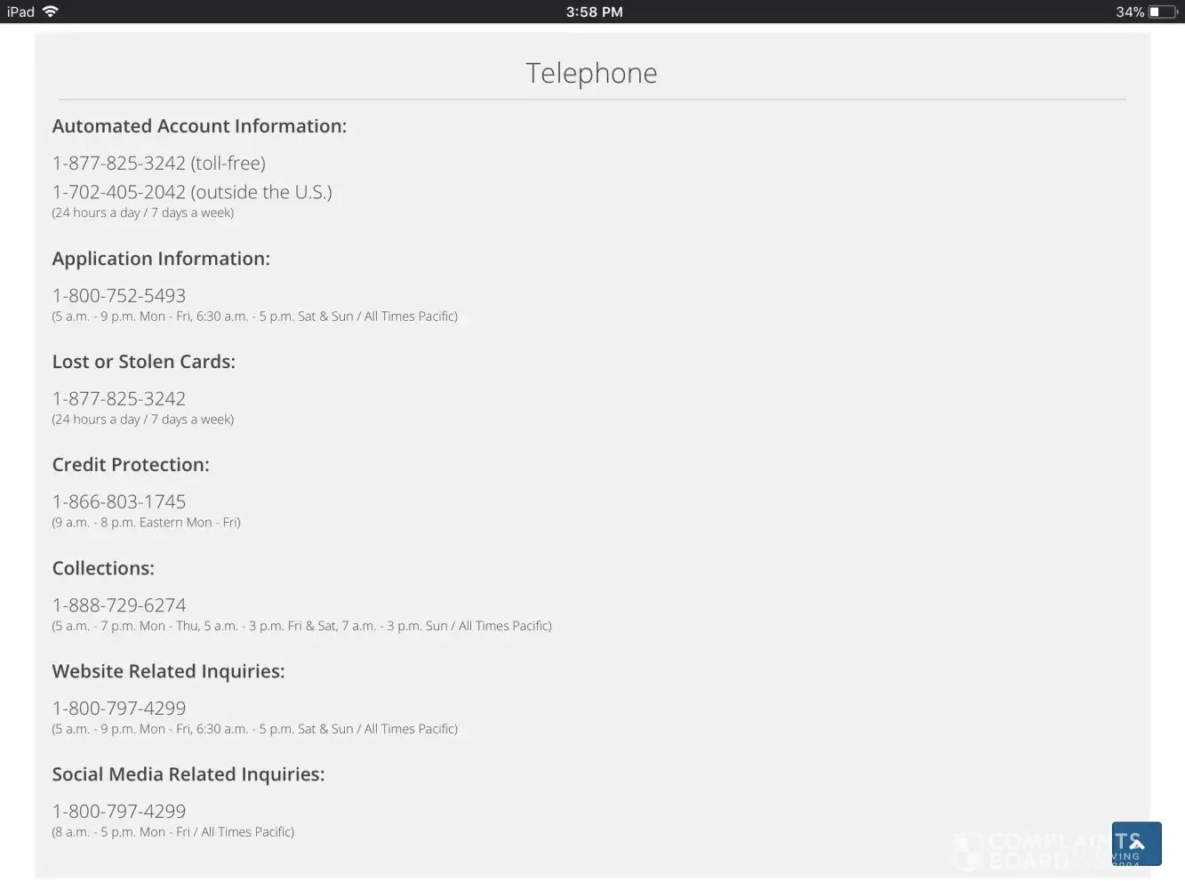 Don't try to talk to an American with this account because you won't get one I've been complaining to them for over a year and now they throw crap on my credit report which is incorrect they transfer you for hours and hours to try to talk to someone do not use the card do not do anything with them they have got to be the worst credit card and as for today I checked my credit report and it just got dropped 48 points for what they say is a $50 payment I owe them this is false this is not true again I've tried for every year to speak to an American it never happens I've caught every month I've asked him to send me a paper bill for over a year it is never happened every time I call I've transferred and transferred and transferred to people the sound all the same but you have to give out all your information over and over again I highly suggest you do not use this card unless you speak 3 or 4 third world languages you won't ever talk to an American and they falsely charged you with things are always asking you for your social for a phone number and everything else do not give it to him anymore and do not go to their website cuz it says dangerous website