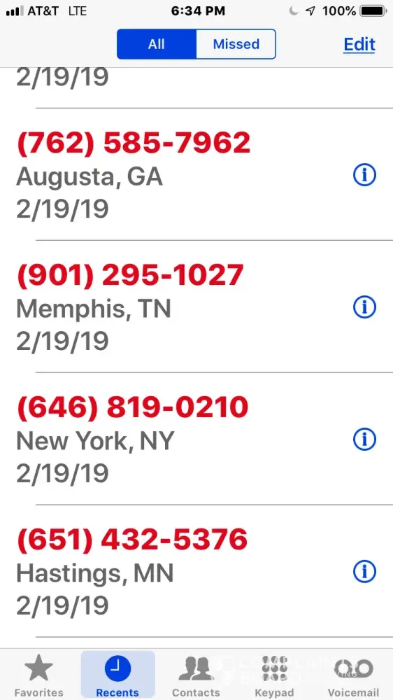 I am late on my credit card payment. The bank started robo calling me around the first part of feburary 2019. These calls were around 9 per day, sometimes in the late night/early morning. I ha had to change my phone number on march 1st 2019. I started savingthe calls on feb.15, I have screenshots of them attachment