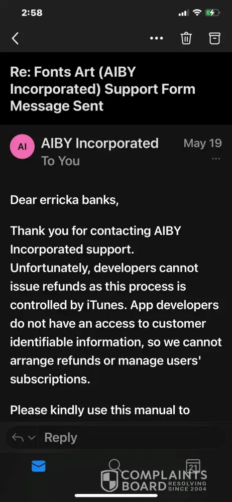 Apple.com states, developers cannot process refunds; therefore, I am seeking to process the refund via Credit 1 Bank