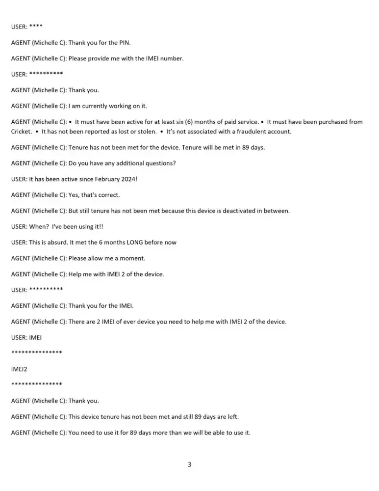 I have had cricket service since February 28th 2024 and attempted to unlock my phone (to move to a more honest company), but they flatly refused saying I needed to have been using it for 6 months (It's been 1.5 years) and wasn't "tenured". The phone was being used and the bill was paid on schedule. I contacted customer service, and, after asking for PROOF...