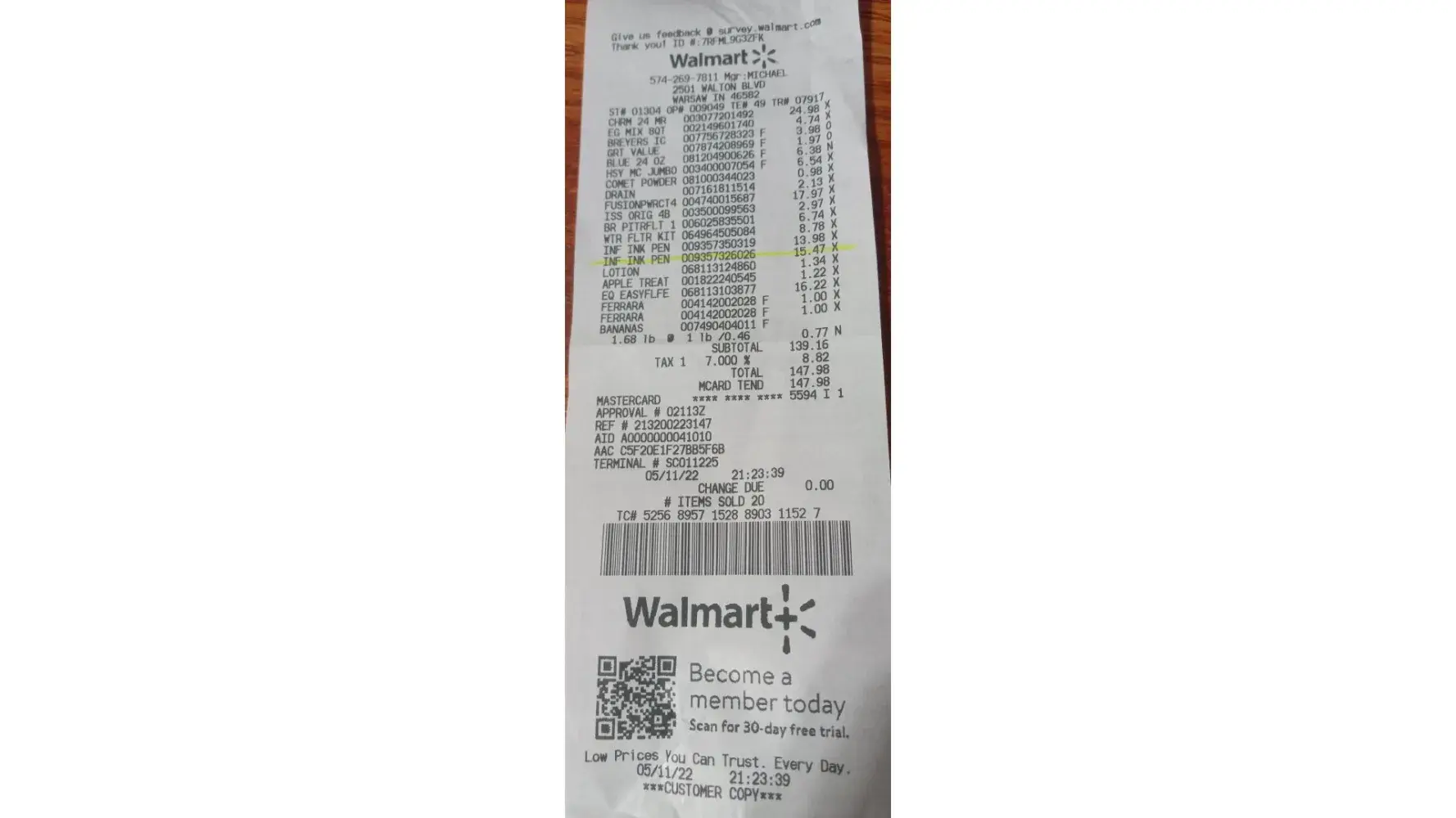 Place of Purchase: Walmart in Warsaw Indiana