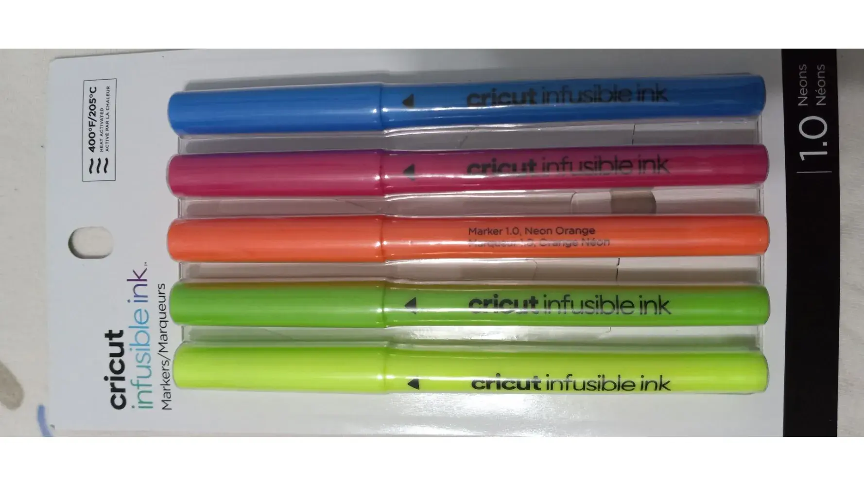 I bought a five pack of Cricut infusible ink markers at Walmart in Warsaw Indiana on 5/11/22 (picture attached), 1.0 Neons - Colors: Neon Pink, Neon Yellow, Neon Blue, Neon Orange, Neon Green