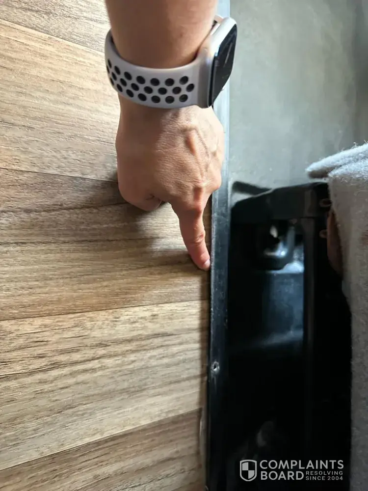 4) Biggest concern: Raised up metal trimming around the entry/exit steps: The trims were lifted up enough that a little toe can go under it. If this happened to be a building, this would never pass by the fire department as it creates tripping hazard during an emergency, e.g. fire or alarm in the dark of the night, with two kids.