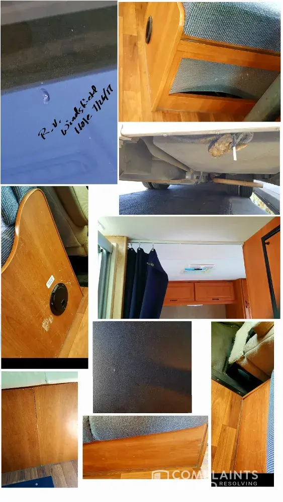 The only thing that needed to be done, as my photographs show, was for the waste tank to be pushed up, and the brackets tightened properly to the frame to hold it back in place. For this, the dealer claimed it cost my entire $500 security deposit for labor and replacement parts, while never having produced any evidence of a.) a damaged and replaced waste tank, b.) any invoices or service records referencing the replacement parts or a new waste tank. My photographs provide some evidence that the damage they claimed was nonexistent, because there is no evidence of having driven the vehicle over anything that could have reached the waste tank where it was bracketed to the frame, because anything below that level would have registered even more damage, The photos show there is no damage from driving over anything. When I told the dealer his disposal of the alleged damaged parts disallowed either of us from adequately and without any doubts proving either of our claims, his response was "well I guess you've got me there".