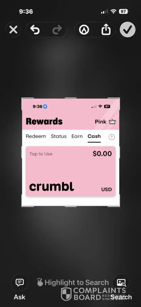 Money missing from my crumble cash card it was 50.00 and I’m extremely upset