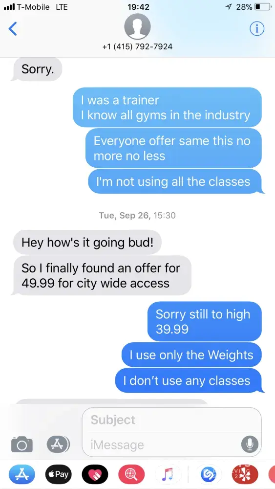 I have a Tex massage from the sales Rapp with a price that my friend Pay by the way