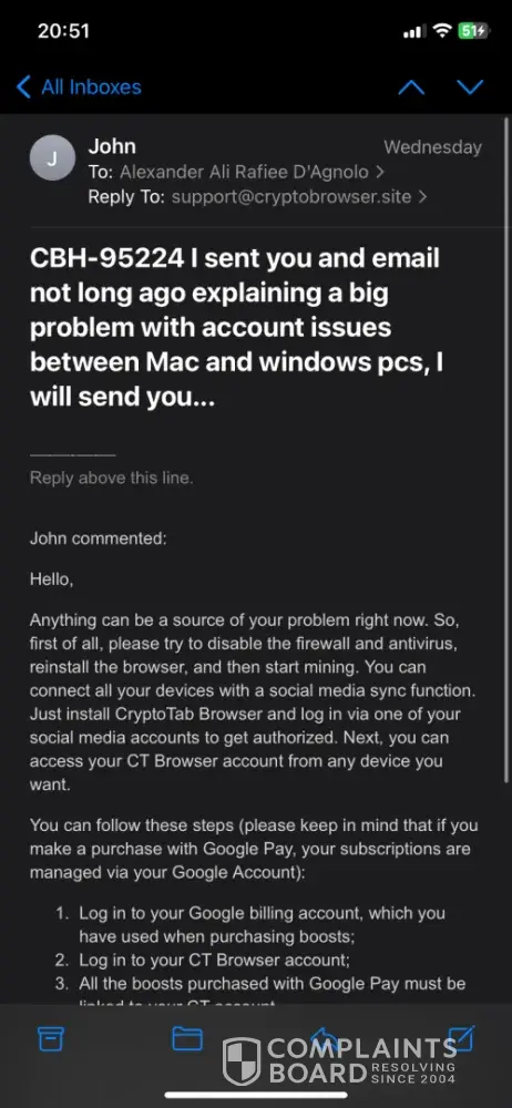 We conducted a search on social media and found several negative reviews related to CryptoTab Browser. These reviews may indicate issues with the company's products, services, or customer support. It is important to thoroughly research the company and its offerings before making any purchases to avoid any potential risks.