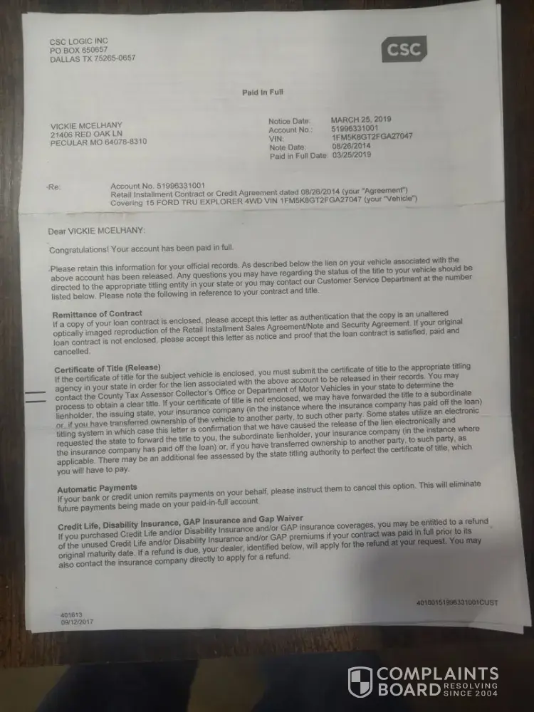 Hello, were you ever able to get your lien release from CSC Logic? I am in the same boat. I need my lien release to register my car in a new state. Any information is greatly appreciated
