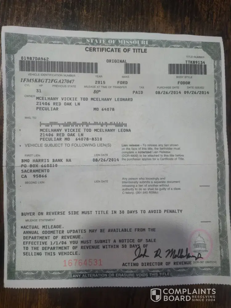 Reading online, I am finding hundred of complaints. I am distressed that I am finding many complaints of this SAME EXACT problem. It is now 10+ months for us, with no response. They say the title is coming, but it does not. In fact, she overpaid her obligation and they said they issued a $23 refund, which we never got EITHER.