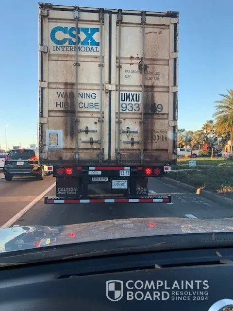 I would like to complain about a CSX driver who almost hit my car while driving on Route 27 N in Davenport, Florida. The driver suddenly turned into the right lane to exit on to Route 4 heading East. The Truck had Tennessee plates 220330T and another set of numbers DDRZ 604121. This happened on Tuesday 01/18/2022 around 5.30 P.m.