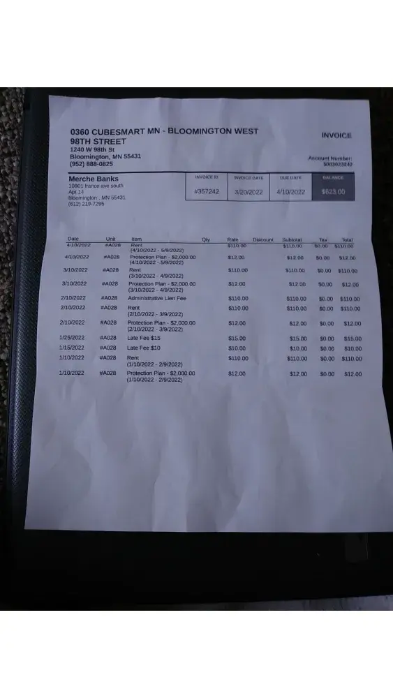 Read full complaintStorage unit billing / reasonable accommodation for my storage unit at, cubesmart storage west 98th street bloomington, minnesota
