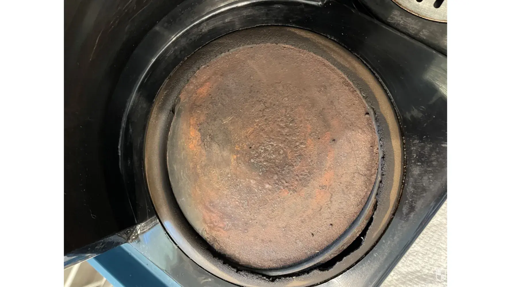 Please refer to the photos and note that the rest of the pan seems "OK", not stained, burned or otherwise mistreated.