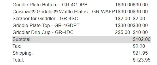 August 30, 2017: Ordered parts for a GR-4 Griddler to be given as a gift to grandson. Cuisinart Web order D3330688.