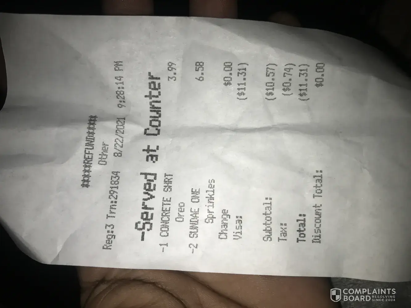 On Sunday approximately 8:50pm on August 22, 2020 I arrived at your margate Fl, location for ice cream with my husband as usual waited patiently in line for approximately 25-35 minutes when we placed our order we was certain that we stated chocolate ice single scoop with sprinkles and a concrete mixer with cheese cake pieces and Oreos just to arrive at the window to be told you guys was out of cheese cake pieces(which was no big deal )just to receive two vanilla single scoops of ice cream with sprinkles, a concrete mixer that was totally half melted (again no biggie) but when I asked for the single scoops to be made over the correct way the cashier Chenyenne was uncooperative she gave me a very nasty attitude and was hesitant to take the ice cream back so I tossed the ice on the counter to get made over meanwhile Chenyenne reply's to her fellow co- worker asking " should I throw it back at her!" Me looking confused because I didn't want to believe she would just threaten to hit a 7 month pregnant customer with ice cream.. Meanwhile she's still talking among her co workers everyone huddled around cheering her on at this point I just wanted a refund because we clearly wasn't getting anywhere the manager Damion came over to assist but wanted to go back and fourth with me and my husband before he gave us our refund I don't have the original receipt but the refund transaction number is 291834 from register 3 this location by far is the worst in history! I will be taking legal actions! Someone needs to be held accountable because this is unacceptable... No one should be treated the way me and my family was treated!