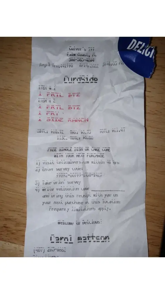 Desired outcome: I would like to try the Culvers in Dubuque, Iowa, on your dime, just to see if this was an isolated indecent.