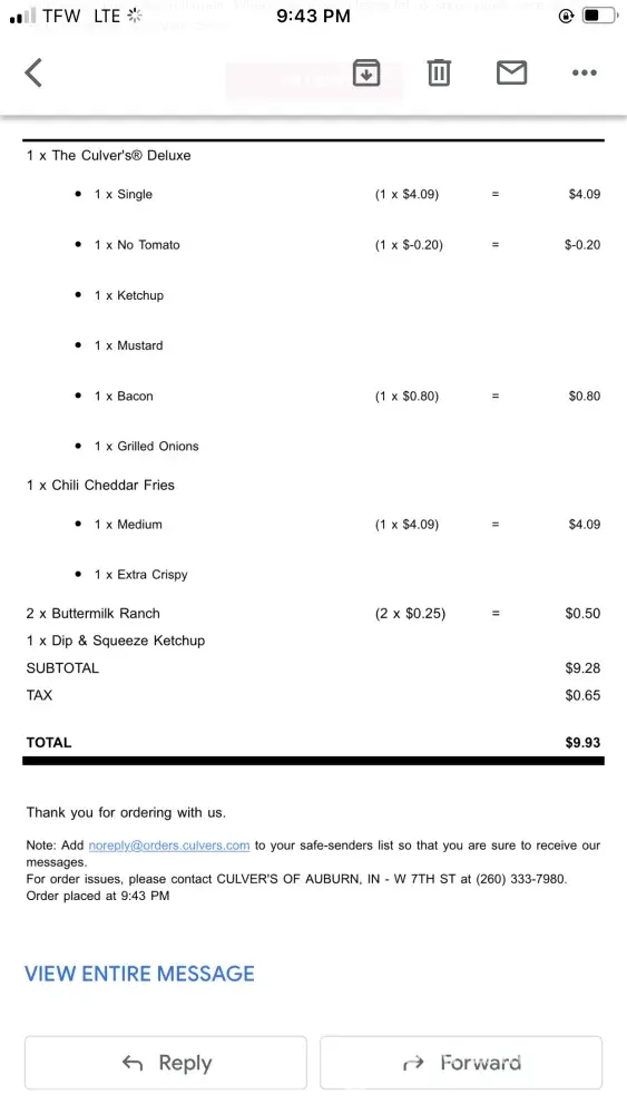 We would have returned to the culvers but did not want to waste more time and more gas.