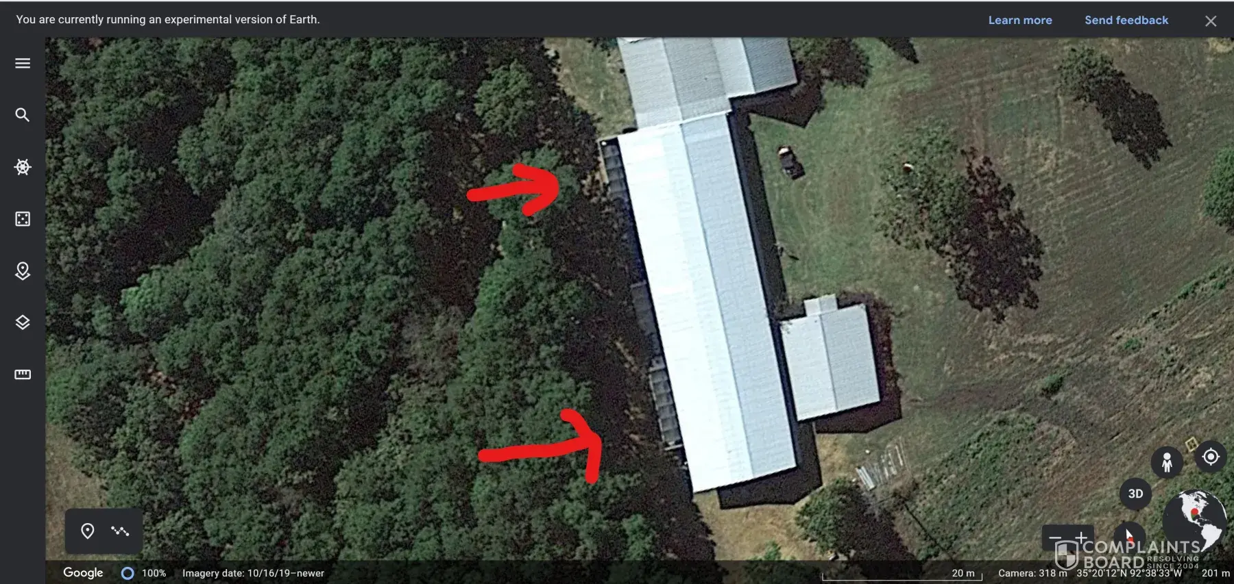 For clarification the area she is pointing to with the red arrows are not cages. This photo was taken high in the sky so the fact that you can even see them in the photo should attest to the fact that they are very large and are not cages. Also this lady has never been to my home so she has no idea what she is actually looking at. She does not even know what the building she is pointing to is actually used for. We have a farm with horses and cattle and chickens. We have large equipment such as tractors and implements. Just like any working farm we have to have a lot of outbuilding. For goodness sake she is using google maps and painting her on story. That one little area! That is very funny. Maybe she needs to keep looking on Google maps and she might find the rest of my areas...Lord only knows where her imagination will take her if she does. A honey bee does not waste her time telling a fly that honey taste better than crap...My pups do not get shipped off. You are more than welcome to pick up your puppy. My daughter can bring your puppy to you and I have a list of cities on my website that she can drive to and meet you or you can arrange for the flight nanny to fly with your puppy in cabin. This lady is just not someone I want to have one of my pups. She got a refund of her deposit and she is upset.