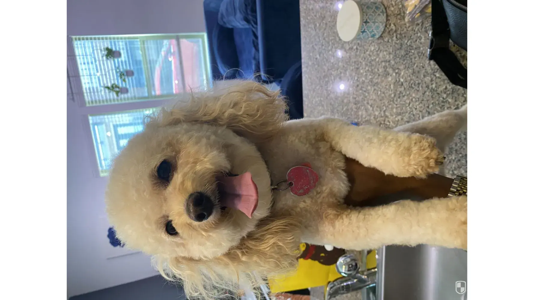 I would HIGHLY recommend this sweet lady! Our Peaches was originally named Milly and she was already a few months old when we got her. She’s adorable still and the sweetest pup we’ve ever had! She stays right beside me constantly! This is her waiting for me to get out of the shower! Lol