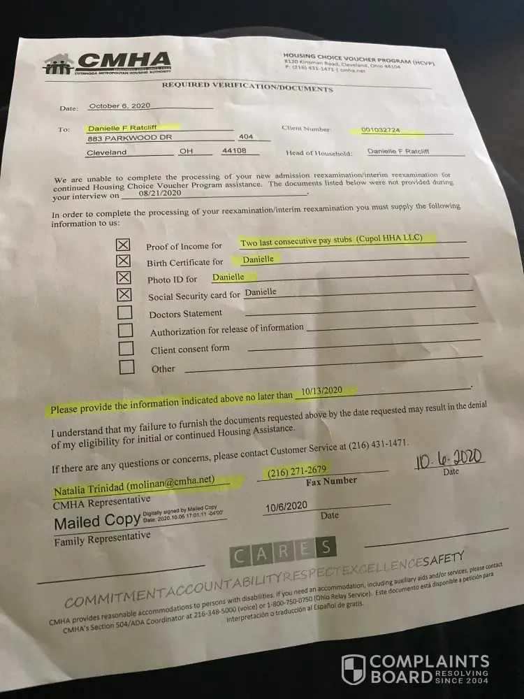 21 Cuyahoga Metropolitan Housing Authority [CMHA] Complaints