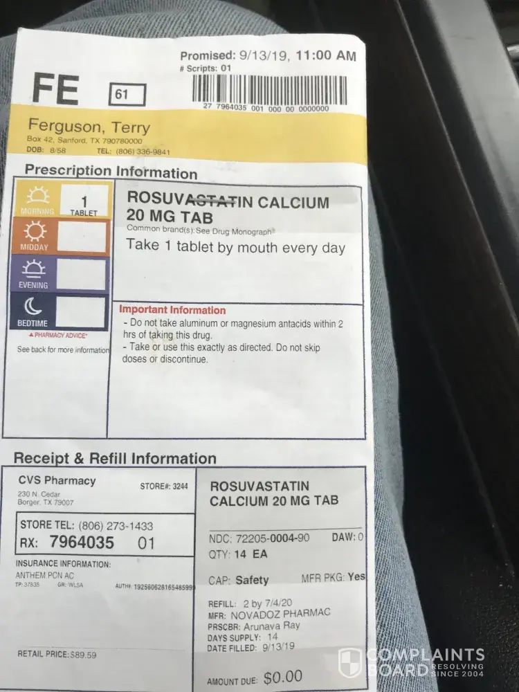 Read full complaintpharmacy customer service