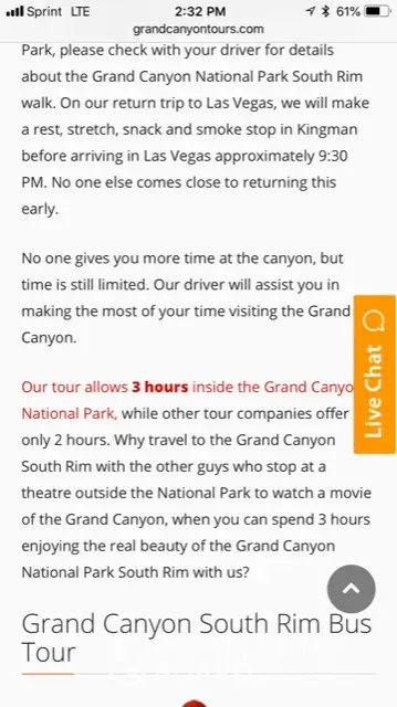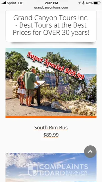As we were on the bus and started talking to others, we found out the Grand Canyon Tour Company had a special for $69.99 which almost everyone on our bus paid. We were LIVID at this time. I called CVS and asked to speak with someone in Show Tours. The lady was extremely rude and stated she would find out who I worked with to book my tour. Maria then texted me and I expressed my concerns with the price. She basically stated there is nothing she can do and we were told that was the price.