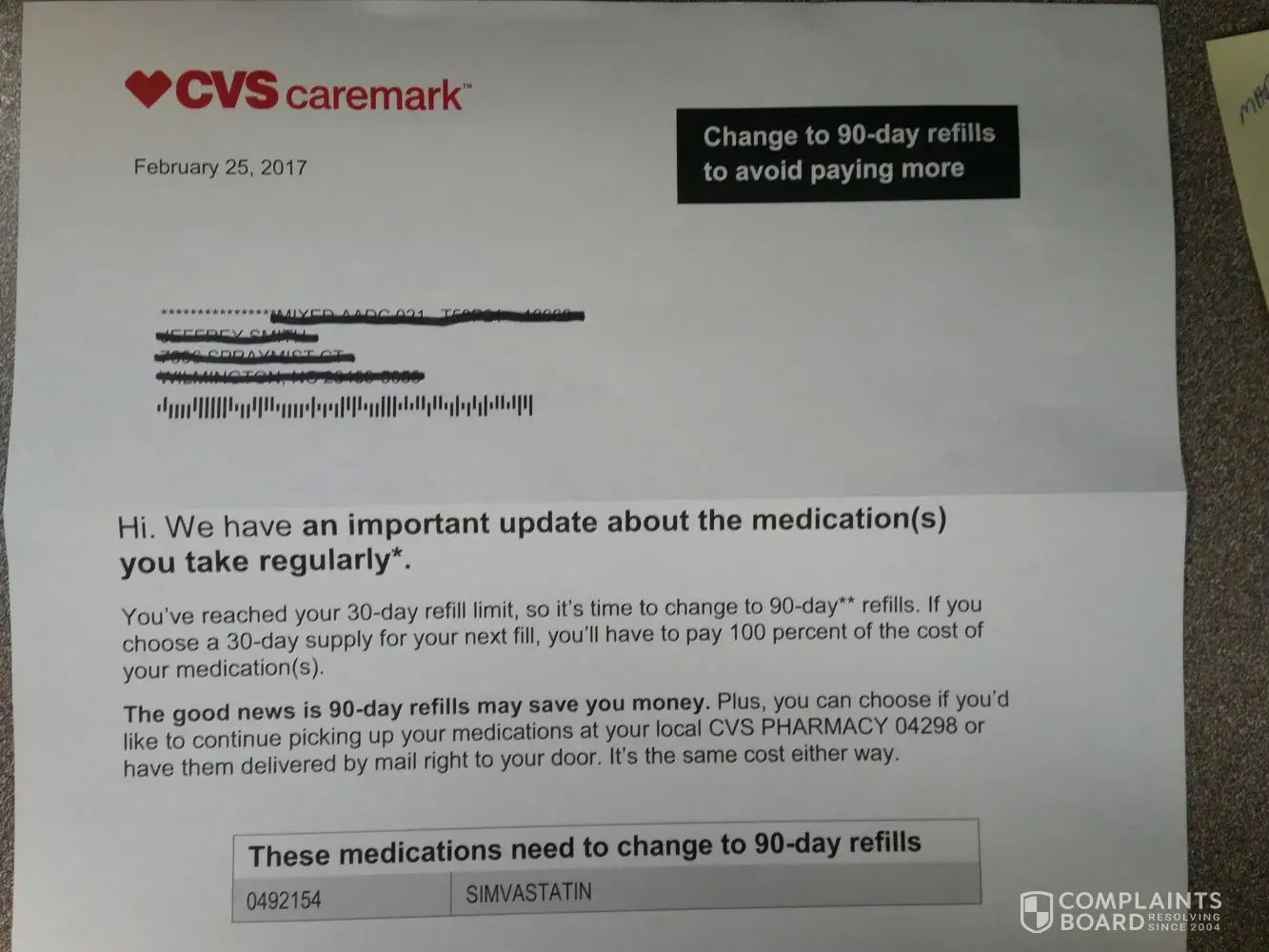 I was mailed a letter from cvs to stop buying 30 day supply of simvastatin and buy 90 days cheaper. I had switched insurance at this same time, so I switched to 90 days. Cost $40. I paid it. Next time I needed to refill I only needed 30 days because the doctor was going to change my dosage In 1 month. The one month costed me $6. I'm like wth. I called and complained and want a refund from cvs for the over charge. Now I have gotten another letter from cvs. Heading says "change to 90-day refills to avoid paying more" this is not a geNeri letter. It names my exact perscription.
