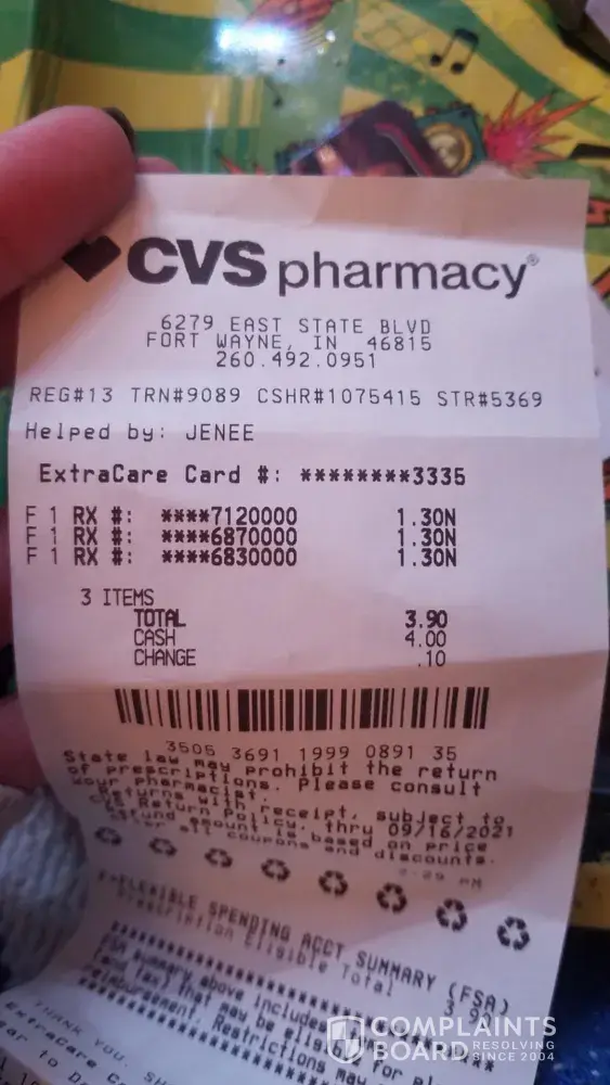 No response since. SO today my daughter returns to the same CVS, same situation. Same poor service. We have used CVS since her accident 20 years ago, Nobody responds.