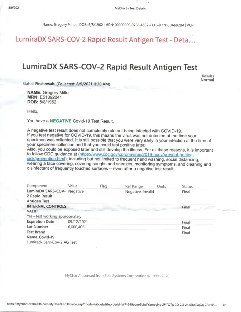 I made an appointment with CVS MinuteClinic for the PCR rapid Antigen test for Travel. I went to CVS and received the test, they sent me the results, it was negative. next day I proceeded to the Airport- Copa Airlines for my flight. Copa said that the test I was given was the wrong test and I wont be able to fly.