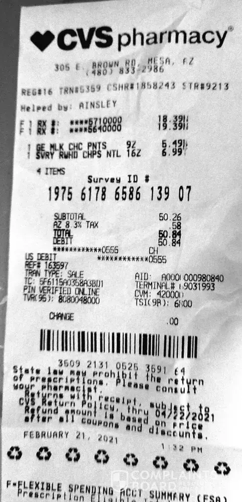 On February 21, 2021 I arrived at CVS in Mesa to find adult diapers and pick up 2 prescriptions from the pharmacy. I am a newbie to being the caretaker to my 81 year old father who for some reason now has much anxiety when he is left alone even briefly. It is just he and I so I was in a rush to get what I needed and get home as you can imagine if you have...
