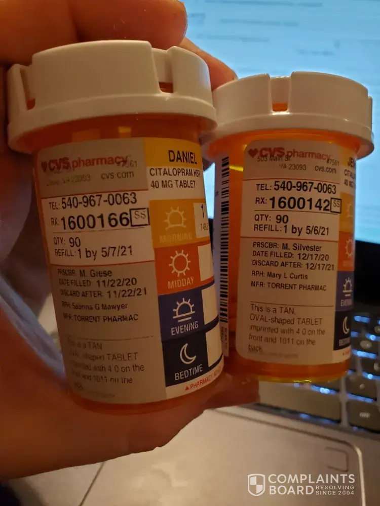 My wife and I have been using your CVS location in Louisa Virginia for the past five plus years and have never had any issues till this last year and now this week. We both take Citalopram HBR 40MG and each get a 90 day supply, and have been for years, Last year my wife had an issue with one of her refills and was told that she had already picked it up and...