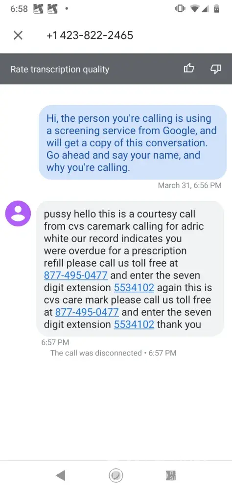 CVS robo calls from pharmacy