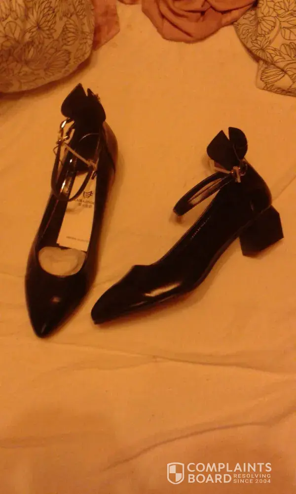 I am sending the picture from their site and a picture of what i got (shiny chinese shoes on my bed)