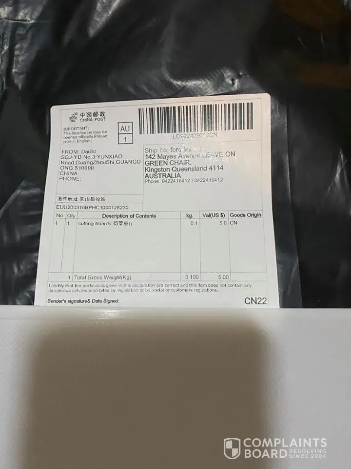 I paid $25.89 USD for this cutting board and received a small thin warped plastic board. Value on the packaging was $5USD