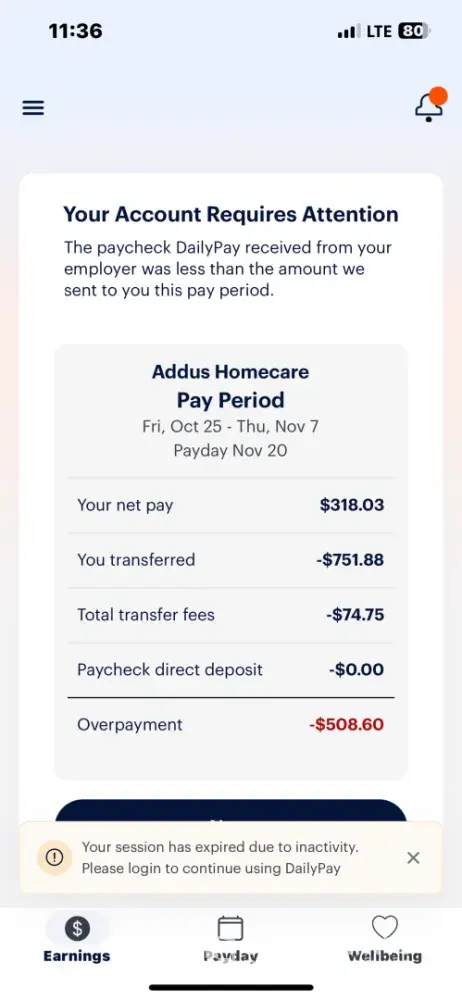 They have gotten the wrong earnings from job. Took money from my account. So pretty much they steal. I kno what I work every day. So it’s not my job. It’s daily pay system I need someone to fix my earring and look into this. daily pay need to be shut down. I was looking thru my time enter and this has gone way to far. This had been going on for month now and I'm just now catching on. My reported earn im mg weren't what my job said tbeh were. They are going into the system and putting what they want there