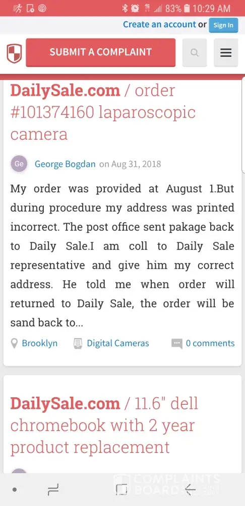 My order was provided at August 1.But during procedure my address was printed incorrect. The post office sent pakage back to Daily Sale.I am coll to Daily Sale