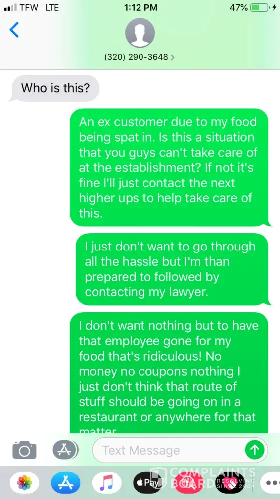 An employee was having an affair at work with my girlfriend who was also an employee and once I confronted both of them later I was told by my girlfriend that she hoped I enjoyed my spit burger. I then confronted her Co worker/lover or whatever via messenger and she admitted everything. I contacted the boss and the unsanitary act was disregarded and he said...