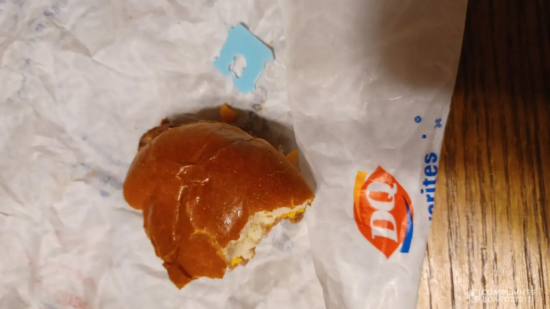 On 6-7-2022, Stopped at MtCarroll Illinois DQ. This was at 8:05 pm. Thru the drive up. Communication was terrible. I swear she was speaking spanish which i dont, Had to tell the order taker i could not understand her several times. Finally her speach got better. I ordered 2 plain hamburgers, fries and 2 icecream cones. She then informed us we couldnt have fries because the frier was off already. this took way too long to get to the point where I thought we both understood each other. I understood I was getting 2 plain hamburgers, and 2 cones. When we got to the window she said did you have the 2 cheesburgers? I said no we had 2 plain hamburgers. She said thats what we call plain hamburgers. When i opened the sack some miles down the road cause we ate the ice cream first there was a surprise. In the sack was the french fries she said we couldnt get. Also our PLAIN hamburgers i had to tell her 3 times i wanted were cheese burgers! And another surprise, there in the wrapper with my unwanted cheese burger was a plastic bread wrapper tie. it was in the wrapper with my burger! And the burgers were terrible. We couldnt even eat them. we thru them away. I am 66 years old. Ive been eating at this DQ as long as it has been there. I also eat at 4 other DQs in my area from time to time. I have never anywhere had food and service this terrible. It took over 25 minutes to get thru this drive thru. Way too long! And she DID NOT give me a receipt either. The bill was just under $16. I wanted to take a photo of it or at least get some info off of it but we did not get one. If I ever go back there and hear that voice again I will drive thru and leave.