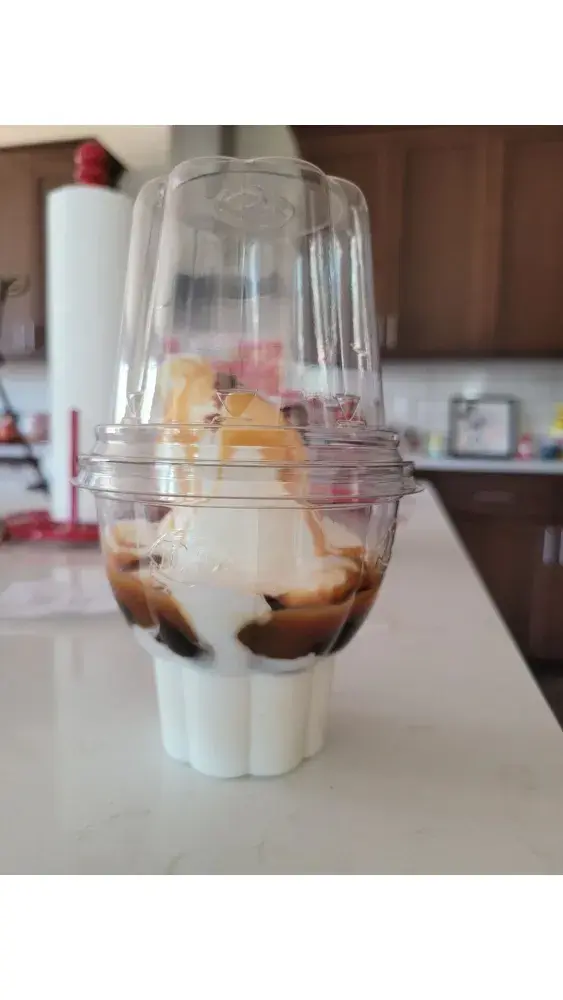 I ordered 2 large hot fudge sundaes, at Carmel topping and got the smallest sundae I've ever seen. Smaller then your normal small. I questioned the size they told me it was because it was melted. There was maybe a tablespoon of each topping.