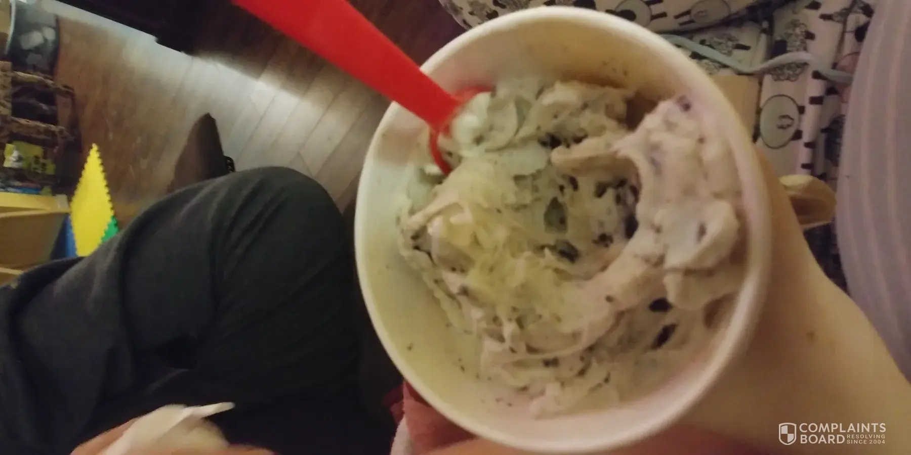 The ice cream was not ok - my roommate and I are very tolerant - but the cones were fizzy and tart/sour - they tasted like someone had carbonated the ice cream and slightly tasted like root beer and sour yogurt. We were worried that we would get sick from eating, so we pulled over on the way home to throw the cones away. I'm concerned that someone is going to get very sick form these cones. Please have someone check on the ice cream at this location - and if possible it would be nice to get a refund or coupon to get another two small cones to make up for the ones that were not edible...