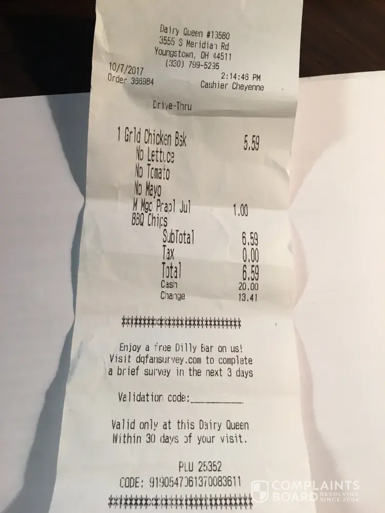 I am writing to inform you of the lack of customer service and care of the employees at the Dairy Queen located at the corner of greenwood road and pines road in Shreveport, la. The problem that I have is with the staff, they never get an order right after you tell them two or three different times what you want and it never comes out right. The drink machine never works and they are always out of something. Today 10/19/17 I went in and ordered the $6 1/3 lb burger with ketchup only and they brought me the $5 deluxe cheese burger with everything on it and on top of that the paper that it was wrapped was in a job application because I guess they ran out of the paper they normally wrap the burgers in. I hope this gets to whoever can do something about it because they are hurting the DQ image.