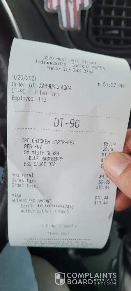 I just went into the establishment on 38th and high-school road waited forever and got home with my meal only when I went to eat my chicken it was raw in the middle. Not many fries as well. I have the receipt plus I took photos of the time on the receipt, the chicken and the time I got home to eat said chicken. Please check out and see if this place is up to standards. I won't go back there.