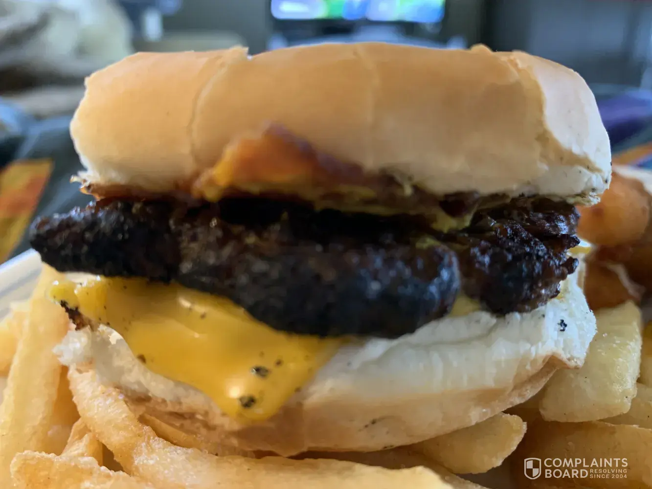 Read full complaintOur cheeseburgers were charcoal burnt.