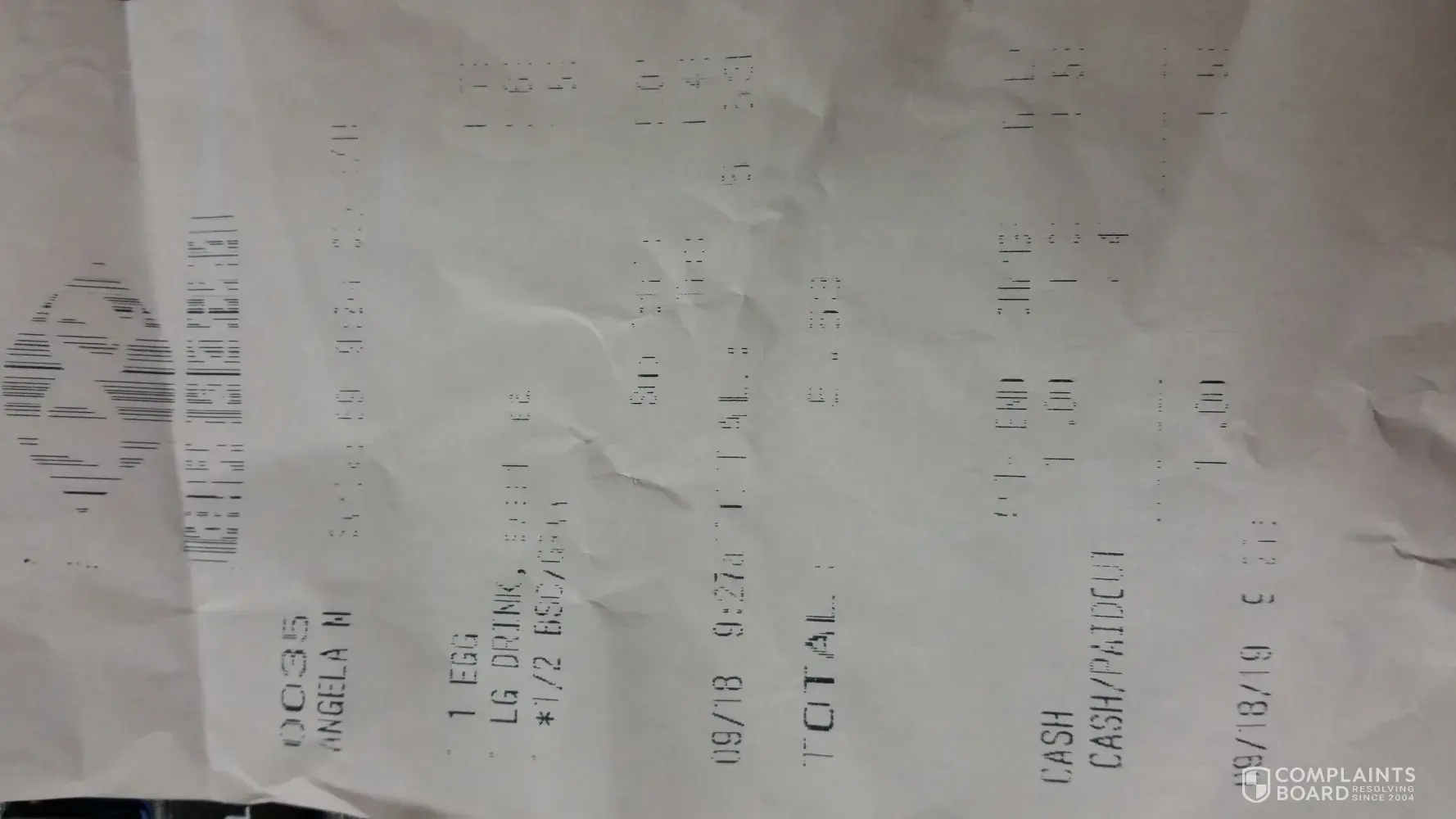 * the drive thru register tape is NOT legible and has been like that for over a year. I've been going to this location for over a year & it has never been fixed. I can make out the left side just enough to "guess" the info. I can only ASSUME it is correct.